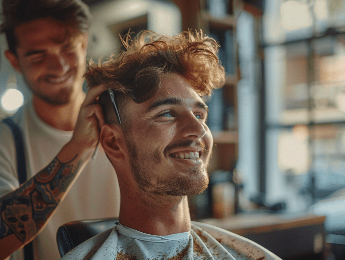 - Side part dégradé : raie marquée, allure intemporelle